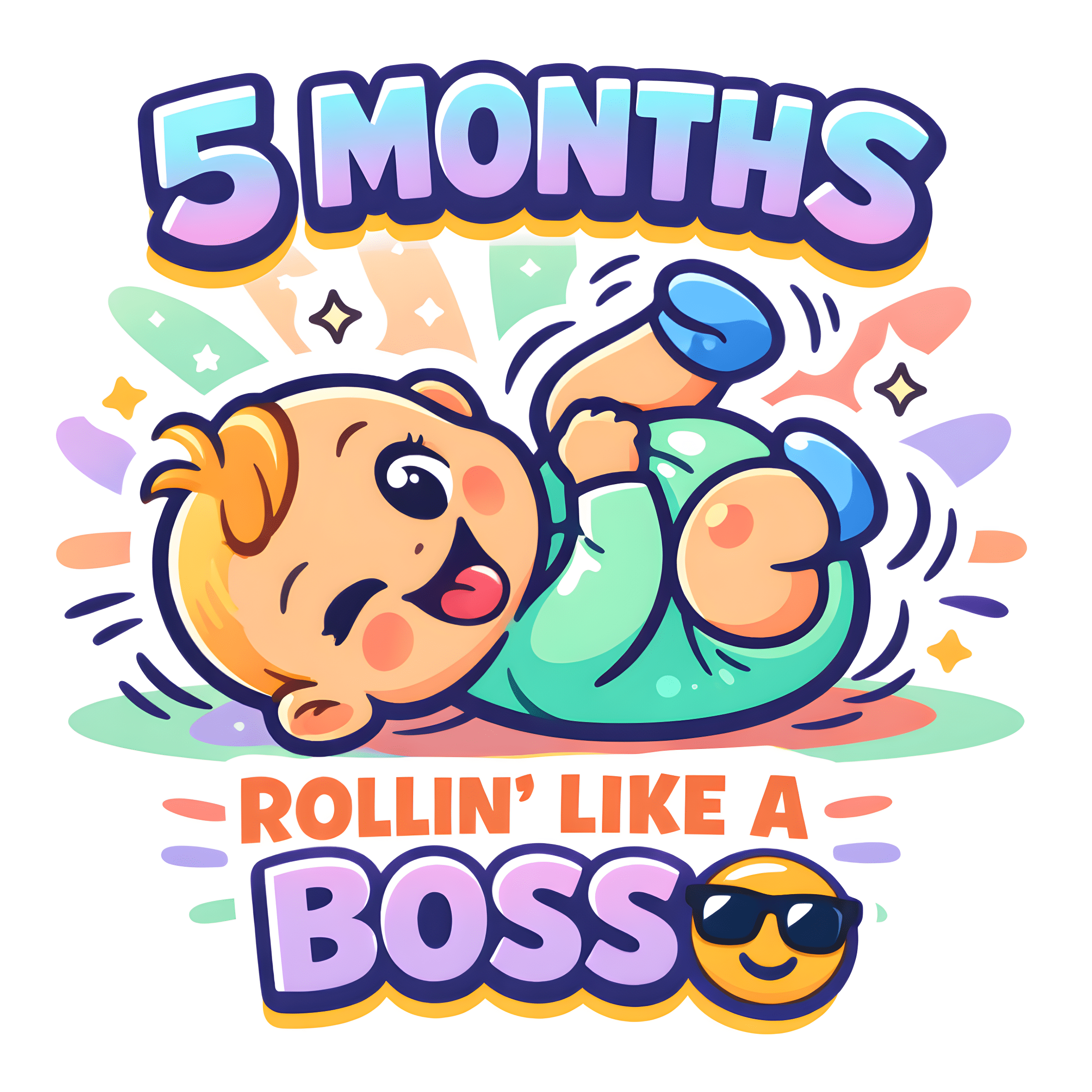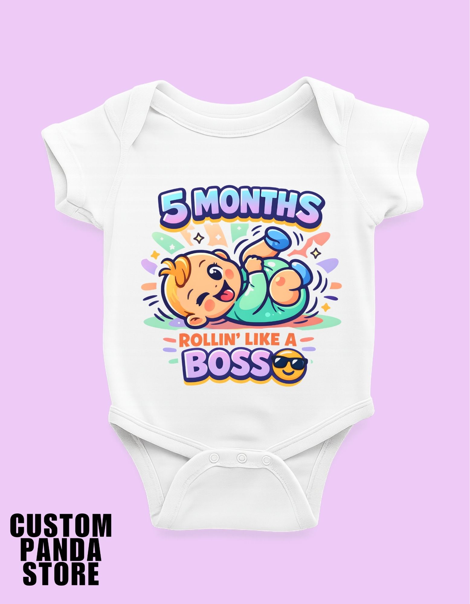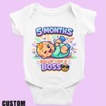 Our “5 Months – Rollin’ Like a Boss” romper celebrates this exciting stage with style and attitude.