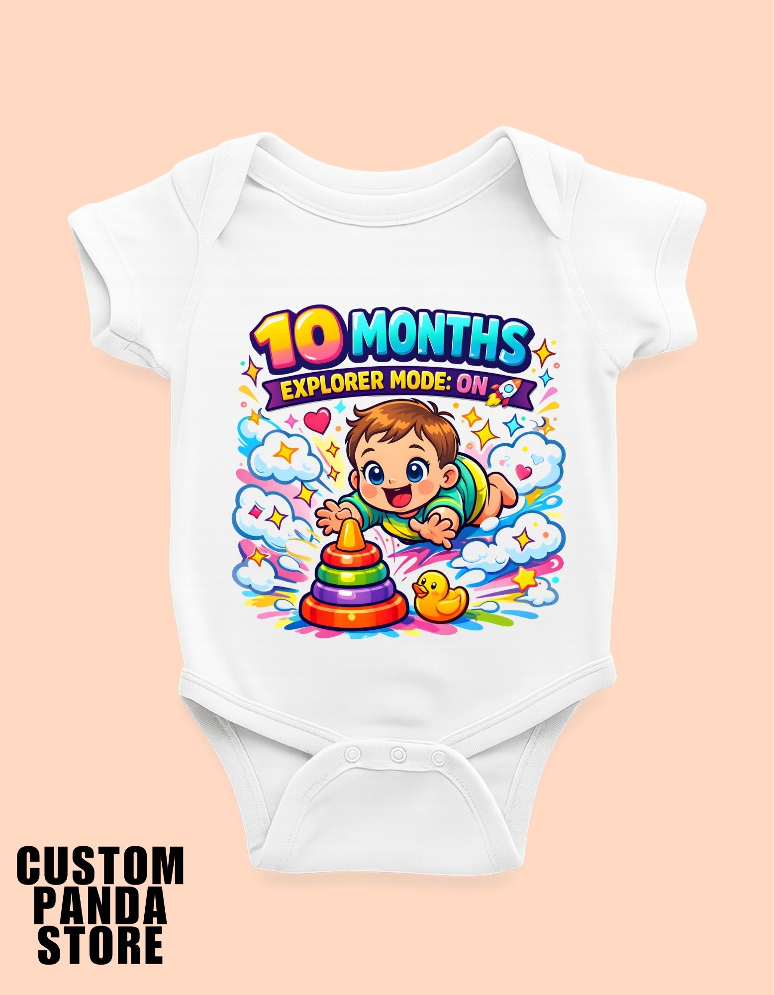 Our β€œ10 Months – Explorer Mode On” romper is perfect for curious little explorers discovering the world.